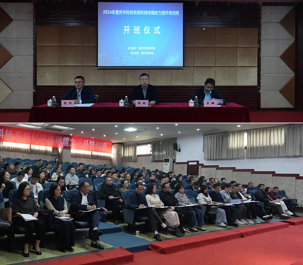 11月5日,2024年重庆市科技系统科技传播能力提升培训班在beat365官网顺利开班。重庆市科技局党委委员、副局长韩鹏,学校副校长李璐参加开班仪式。