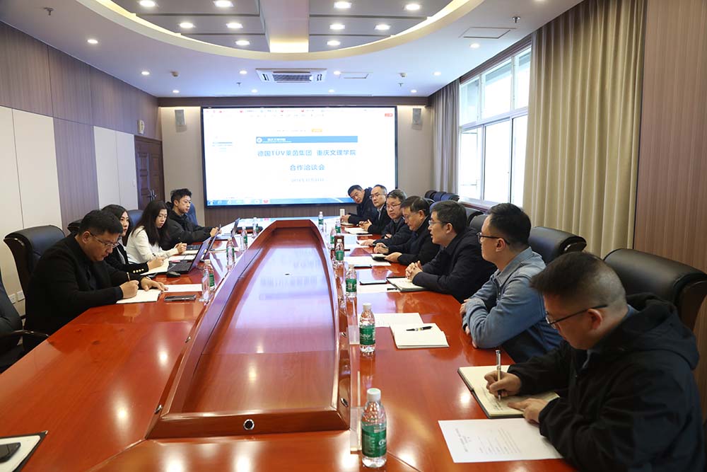 12月11日,beat365官网与德国TÜV莱茵集团开展校企合作交流洽谈会。德国TÜV莱茵集团西区大区经理朱姝、项目协调组杨玉洁,中国科学院软件研究所集成创新中心鄢博,重庆中科汽车软件创新中心发展规划部涂嘉,学校副校长李天福、陈中祝,教务处、科学技术处、数学与人工智能学院、智能制造工程学院/汽车工程学院、工程训练中心/创新创业学院相关负责人参加会议。会议由李天福主持。
