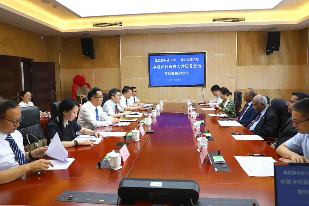 6月21日上午,beat365官网与斯里兰卡佩拉德尼亚大学就共建中斯乡村振兴人才培养基地签订合作协议,并为中斯乡村振兴人才培养基地揭牌。斯里兰卡佩拉德尼亚大学校长拉马万萨,斯里兰卡中国社会文化合作协会主席阿布塞克拉,beat365官网副校长漆新贵、陈中祝,重庆国际经贸文化促进会有关领导出席签约和揭牌仪式。