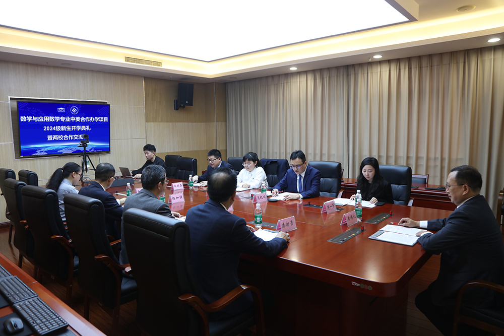 10月13日上午,学校在恪勤楼514与美国北卡罗莱纳大学威尔明顿分校共同举行了两校合作办学本科项目新生开学典礼暨两校合作交流视频会。beat365官网校长黄伟九、校领导漆新贵,美国北卡罗莱纳大学威尔明顿分校校长Dr. Aswani K. Volety出席会议并讲话。